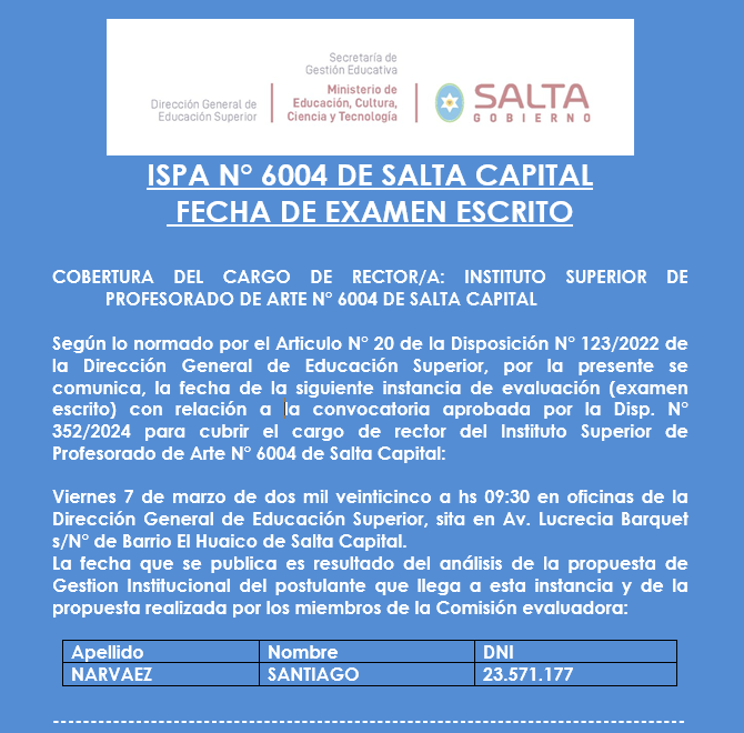 Convocatoria Disp. 352/24 cobertura de cargo de Rector del Instituto Superior del Profesorado de Arte N° 6004