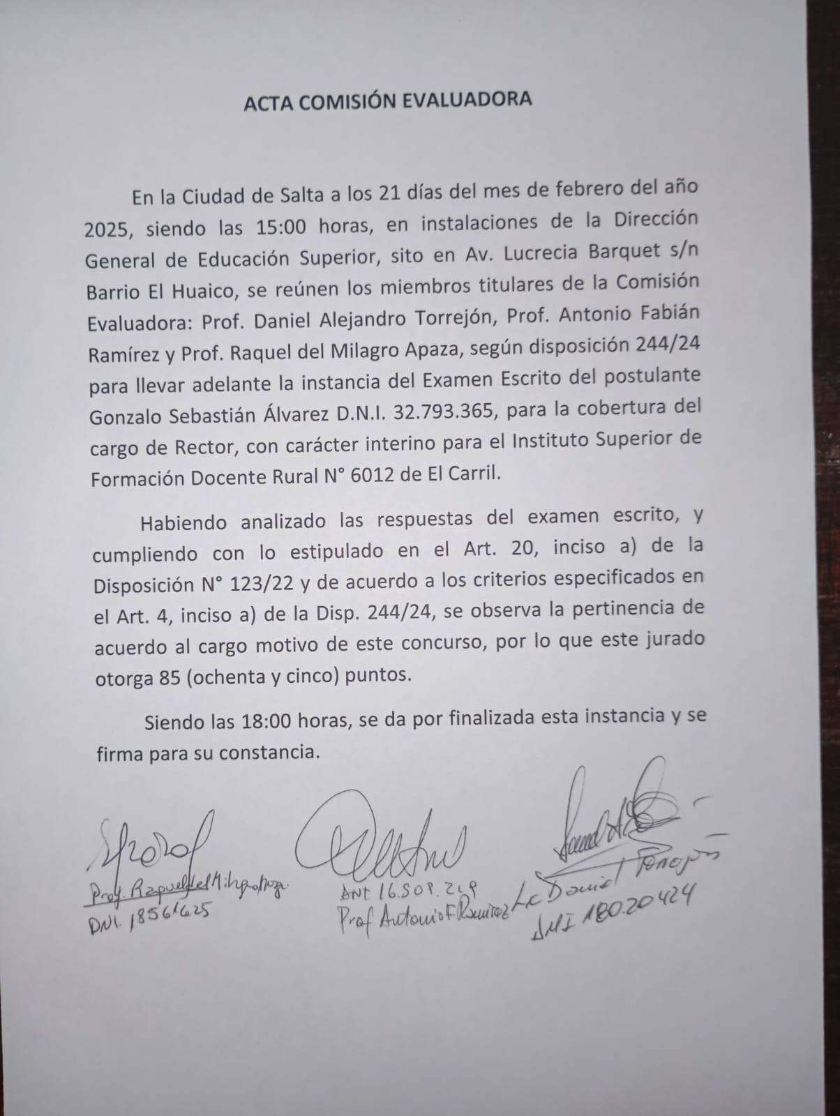 Nómina de aspirantes inscriptosNomina definitiva de aspirantesDisposición nuevo tribunal (si correspondiere)Dictamen evaluación de Títulos y AntecedentesFecha de Examen Escrito y ResultadosFecha de Exposición y defensa oral de la propuesta de Gestión y ResultadosDisposiciones DGES