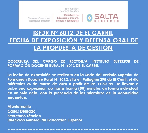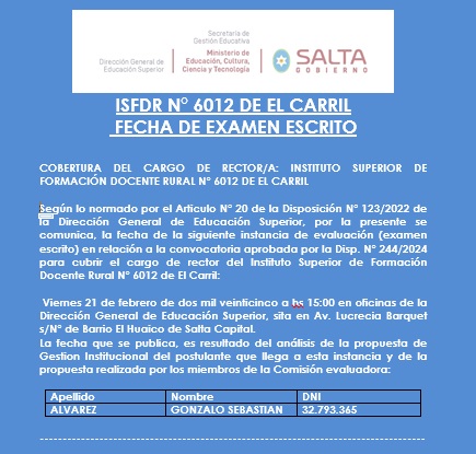 Convocatoria Disp. 244/24 cobertura de cargo de Rector de Instituto Superior de Formación Docente Rural N° 6012