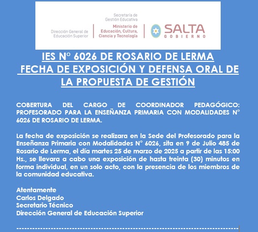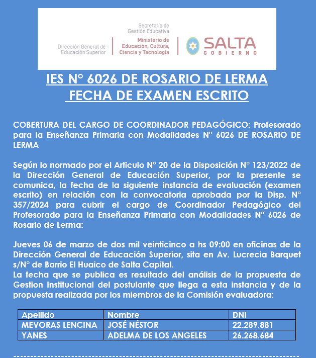 Convocatoria Disp. 357/24 cobertura de cargo de Coordinación Pedagógica del Profesorado para la Enseñanza Primaria con Modalidades N° 6026