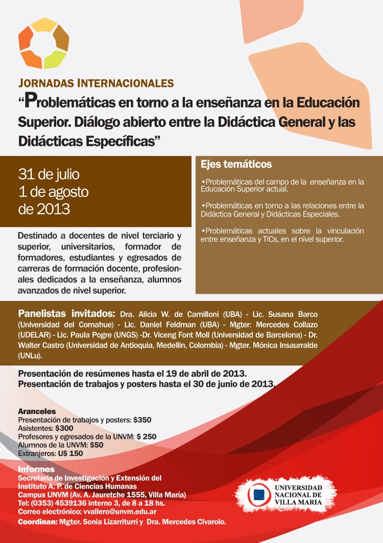 Los trabajos a presentar responderán a la modalidad de narraciones de experiencias, avances de investigaciones y ensayos. Los mismos se recepcionarán hasta el 30 de julio del coriente año.